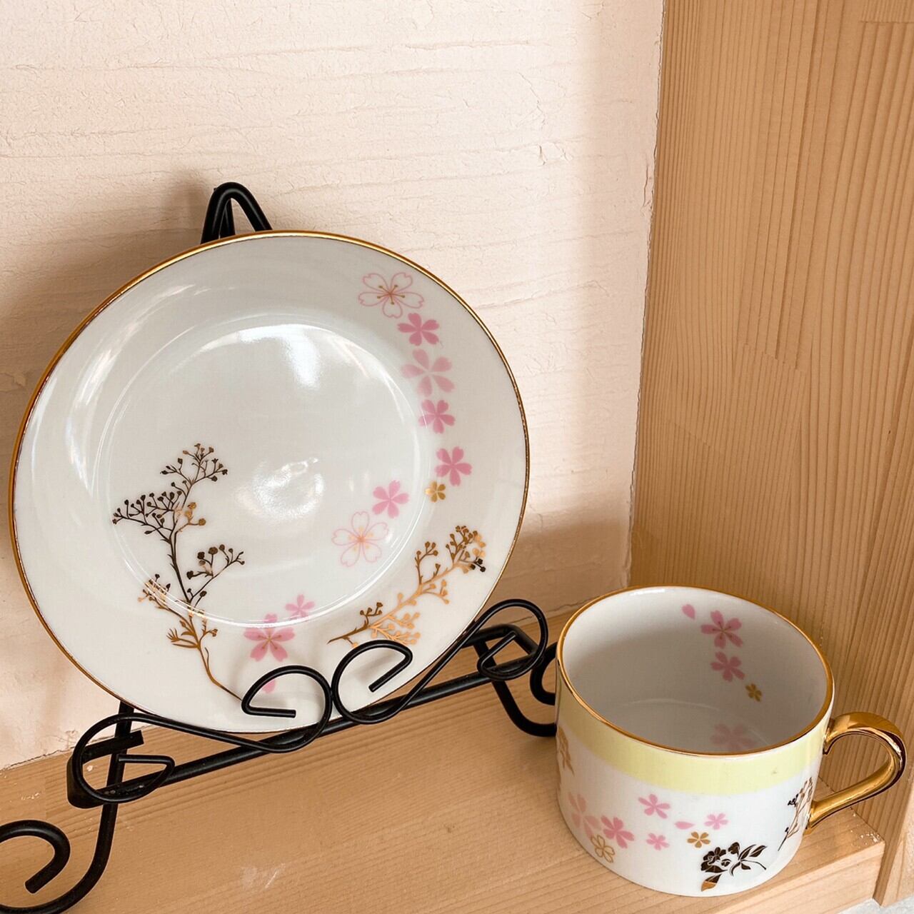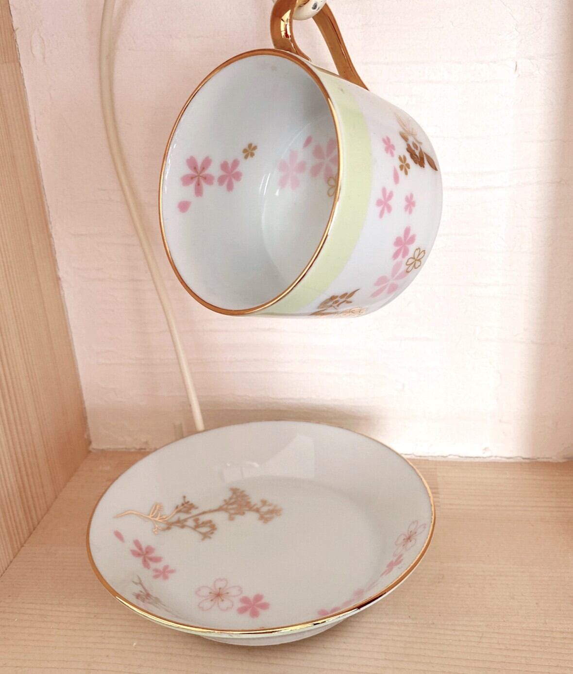 ハンドメイドのポーセラーツ作品です。金フチ仕上・さくら柄がかわいいカップ&ソーサーです。